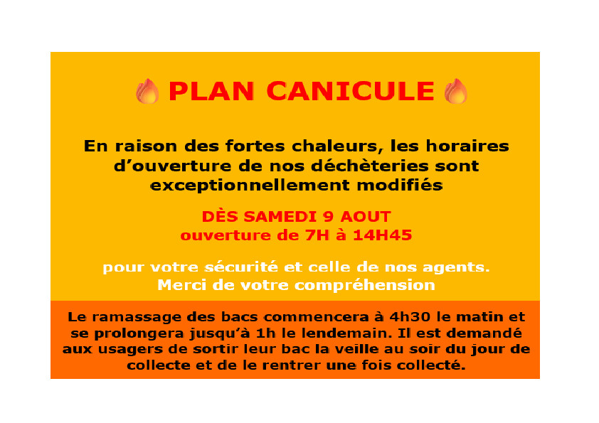 En raison des fortes chaleurs, les horaires d’ouverture de nos déchèteries sont exceptionnellement modifiés.